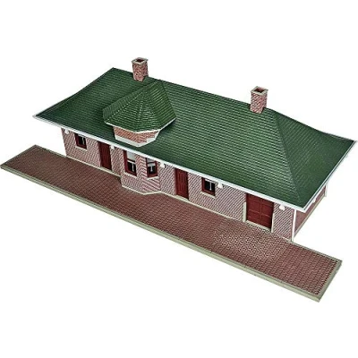 Available for the first time as an easy-to-build kit Classic brick passenger station - similar designs used by many Railroads Fits 1890S to present Authentic DESIGN with bell roof Printed signs, window shades and "leaded glass" For door transoms, Manufacturer: Walthers - Life Like
