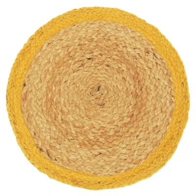 The Walton & Co Ochre Fiesta Circular Jute Placemat is perfect for adding a pop of colour to your dining table with a rustic style. Made from 100% jute, it has a natural beige centre with a bold yellow border for an enhanced table setting that will instantly bring that summer feeling.Made from 100% Jute.35cm diameter.Spot clean only.