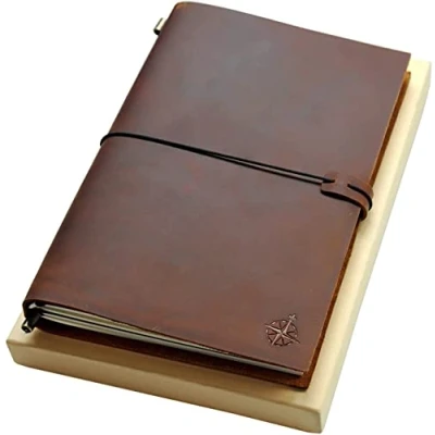 Beautifully Crafted High-quality full grain 100% leather that looks, smells, and feels beautiful. Naturally tanned crazy horse leather will age with character - or simply rub away your markings if you choose. A lifelong keepsake for your thoughts and expressions. 7.5x11.25 inches / 19cm x 28.5cm Refillable Buy this notebook once and continue to use it for a lifetime. Your old refills are a log of your life's experiences. Refills available on Amazon in Blank (b07cqqvlxy), Lined (b07cqqqp7p) and Dotted (b07cqpb59w) Fountain Pen and Paint friendly paper. Blank and un-lined. Thick 120 GSM paper. 90 double-sided sheets (180 total) Attention To Detail Our journals are carefully crafted for quality. You'll love the look feel and the fact that it won't fall apart like some notebooks. Also available in Small and Medium sizes Also available on Amazon in size A5 (b07jnpnkkj), Regular (b07yfbq4gx), A6 (b083jyg6vr) and Pocket (b01n24byq7)