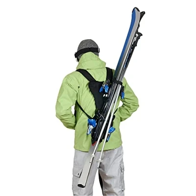 > Easy to install (10 seconds): slide your skis into the bottom loop and close the top loop and then position the Skiback on your back like a backpack. > Compatible with all skis: the scratch allows you to tighten the loop according to the width of your skis for maximum support whatever the width of your skis. > Folds: designed to follow you throughout your skiing day, the ski carrier folds easily to take up a minimum amount of space and fits easily into your jacket pocket. > Practical and comfortable: designed to make life easier for skiers, the Skiback is a patented product that allows you to carry your skis easily and comfortably. Its 30 inclination has been designed to avoid the impact of the skis on the head and lower back. The adjustable straps will allow you to adjust the Skiback at your convenience to distribute the weight.