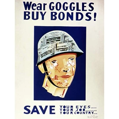 War WWII USA Wear Goggles Buy Bonds Advert Premium Wall Art Canvas Print 18X24 Inch