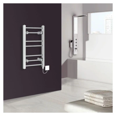 General description This Electric Heated Warming Towel Rail is designed to provide efficient heating for your towels, ensuring they are warm and ready for use. With a sleek chrome finish, it adds a modern touch to any bathroom decor. Technical specifications Dimensions: 700mm height x 400mm width Number of bars: 7 Pipe Centres: 350mm Element Power: 100W Pressure tested to 10 bar, maximum working pressure: 7 bar Manufactured to BS EN 442 Installation This item comes pre-filled and ready to install. It is recommended to have a qualified electrician perform the installation. Usage Compatible with bathroom takeaway towel rails. All elements come with a 1m cable. Other information Includes a fixing pack complete with plugs and vents. 2-year guarantee on the heating element. 10-year Fit and Forget guarantee (applies only to water leaks).