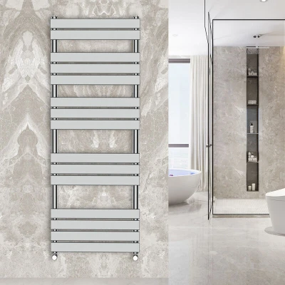 General description WarmeHaus 1600x600mm Flat Panel Heated Towel Rail is a stylish and efficient solution for warming towels in your bathroom or kitchen. Its sleek chrome finish adds a modern touch while providing excellent heat output. Technical specifications Colour: Chrome Height: 1600mm Width: 600mm Depth: 46mm Weight: 21KG Depth when fitted: 62mm Pipe Center: 550mm Bars: 15 (2+3+3+3+4) Heat Output: 2399-3596 BTUs Material: Steel Fitting Type: Wall mounted RAL Code: 9016 Finish: Powder Coated Installation Type: Central Heating Inlet connection: 1/2'' Pressure tested to: 10 bar Other information 10 year 'Fit and Forget' guarantee (applies only to water leaks) CE marked IP X4 moisture ingress protection rating Tested and certified to BS EN 442 standards