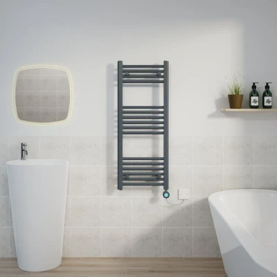 WarmeHaus 400W Electric Thermostatic Heated Towel Rail Bathroom Radiators Straight with LCD Display Timer Anthracite 1000x400mm