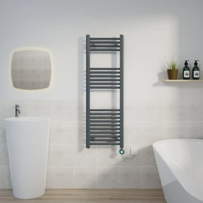 WarmeHaus 600W Electric Thermostatic Heated Towel Rail Bathroom Radiators Straight with LCD Display Timer Anthracite 1200x400mm