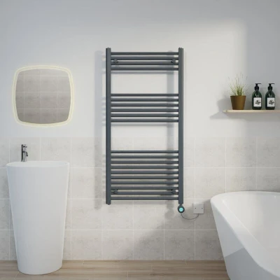 WarmeHaus 600W Electric Thermostatic Heated Towel Rail Bathroom Radiators Straight with LCD Display Timer Anthracite 1200x600mm