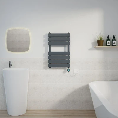 General description This Flat Electric Towel Rail in Sand Grey features a sleek flat panel design and is perfect for keeping your towels warm and dry. With a powerful 400W thermostatic heating element, this towel rail is both efficient and stylish, making it an ideal addition to any bathroom. Technical specifications Dimensions: 650x400mm Power: 400W Power Supply: 230-240V Cable Length: 1.1m Number of Bars: 7 (3+4) Pressure Tested: 10 bar CE Marked Standards: Tested and certified to BS EN 442 Installation Wall mounted fitting type Comes pre-filled and ready to install T Piece Connector included for converting to dual fuel Industry Standard 15mm connection Usage Four Timer Settings: a. Free Mode: Temperature adjustable from 30°C to 70°C b. Constant Temperature Mode: Fixed at 50°C c. Timing Mode: Fixed at 65°C, adjustable drying time from 30 minutes to 8 hours d. Schedule Mode: Timing function with adjustment from 0 to 23 hours Child Lock function: Prevents operation of any key except
