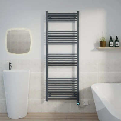 WarmeHaus 800W Electric Thermostatic Heated Towel Rail Bathroom Radiators Straight with LCD Display Timer Anthracite 1600x600mm