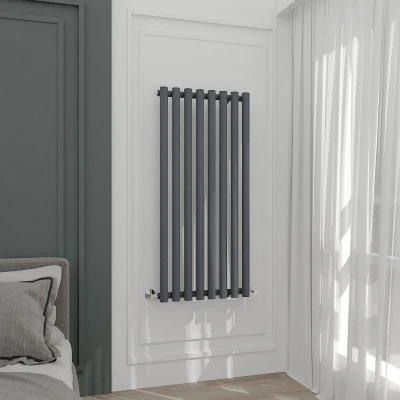 WarmeHaus Anthracite 1200x545mm Vertical Designer Column Radiator Single Grey Round Panel Tall Bathroom Radiators Heater