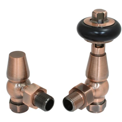 Warmehaus Chelsea Traditional Angled TRV Thermostatic Radiator Valves Antique Copper