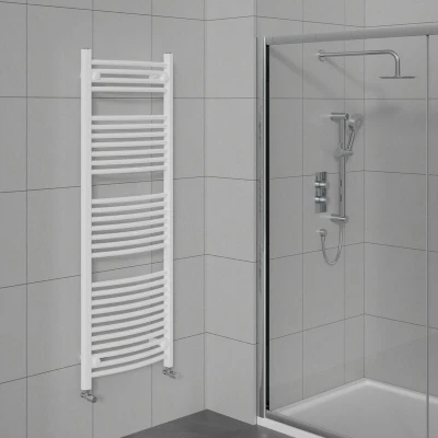 Warmehaus Curved Bathroom Heated Towel Rail Warmer Radiator Central Heating White 1500x600mm