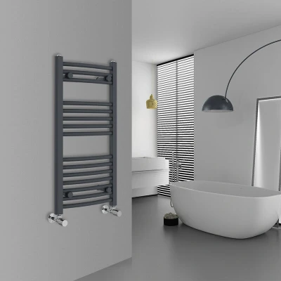 General description The WarmeHaus Curved Anthracite Bathroom Ladder Radiator is an elegant addition to any bathroom, combining style and functionality. Its striking anthracite finish adds a touch of luxury without being overpowering, making it perfect for those with a taste for elegance. This heated towel rail not only enhances the aesthetic of your space but also efficiently warms your towels, ensuring they are ready for you after a shower. Technical specifications Height: 800mm Width: 400mm Number of bars: 15 Wall to Centre Tapping: 72.5-92.5mm Tube Type: Curved Tube Diameter: 22mm Heat output: 942 BTU Finish: Anthracite Material: Mild Steel Tested to BS EN442 Specification Compatibility and accessories Compatible with all UK heating systems (tank fed or combi systems) Brackets and fixings included (valves are excluded) Other information 10 year Fit and Forget guarantee (applies only to water leaks) Tested under high hydraulic pressure to ensure impermeability Manufacturer-leading
