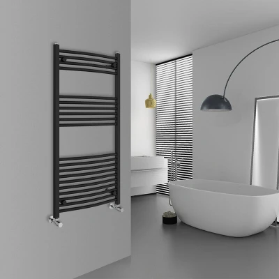 Warmehaus Curved Heated Towel Rail Black Bathroom Ladder Style Radiator Central Heating 1200x600mm