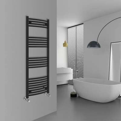 Warmehaus Curved Heated Towel Rail Black Bathroom Ladder Style Radiator Central Heating 1400x500mm