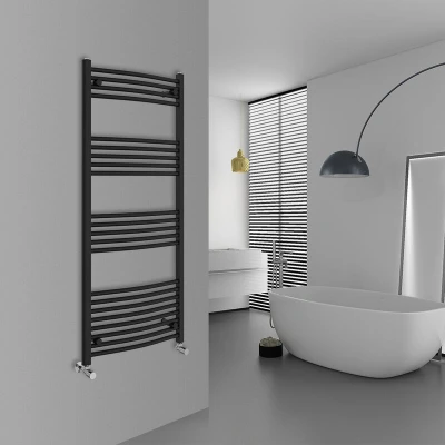 Warmehaus Curved Heated Towel Rail Black Bathroom Ladder Style Radiator Central Heating 1400x600mm