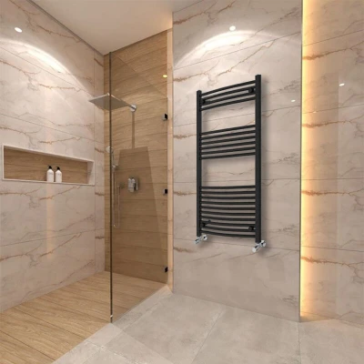 Warmehaus Curved Heated Towel Rail Radiator Ladder Black 1200x600mm Central Heating Radiators for Bathroom Kitchen