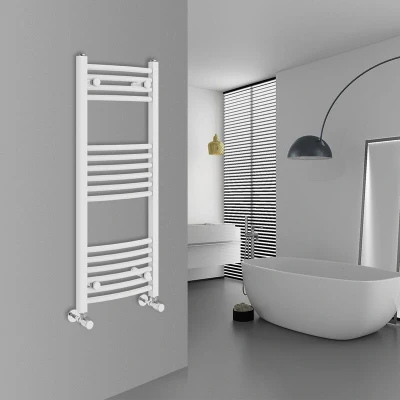 Warmehaus Curved Heated Towel Rail White Bathroom Ladder Style Radiator Central Heating 1000x400mm