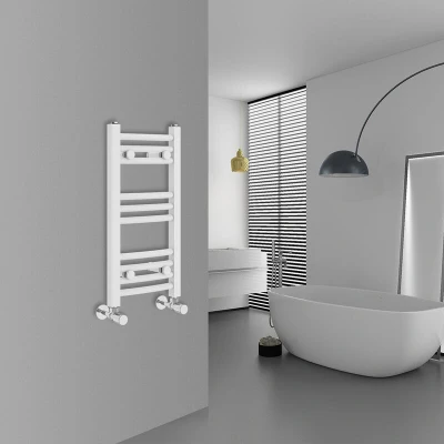 General description The WarmeHaus Curved White Bathroom Ladder Radiator 600x300mm is an elegant addition to any bathroom, serving as both a functional heating solution and a stylish statement piece. Its striking white finish enhances the aesthetic of your space while efficiently warming your towels for a cozy experience after your shower. Technical specifications Height: 600mm Width: 300mm Number of bars: 10 Wall to Centre Tapping: 73-93mm Tube Type: Curved Tube Diameter: 22mm Heat output: 536 BTU Finish: White Material: Mild Steel Compatibility and accessories Compatible with all UK heating systems (tank fed or combi systems) Brackets and fixings included (valves are excluded) Other information Tested under high hydraulic pressure to ensure impermeability Tested to BS EN442 Specification 10 year Fit and Forget guarantee (applies only to water leaks) Manufacturer-leading 10 year guarantee