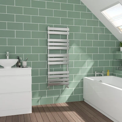 General description The Flat Panel Chrome Towel Radiator is a stylish and functional addition to any bathroom. With its striking chrome finish, it adds a touch of luxury while maintaining an elegant design. This heated towel rail not only serves as a statement piece but also provides warmth and comfort for your towels. Technical specifications Dimensions: 1200x450mm Pipe Center: 400mm Tube Diameter: 60mm Number of bars: 12 (2+3+3+4) Heat output: 1772 BTU Pressure tested to 10 bar Maximum working pressure: 7 bar Manufactured to BS EN 442 Installation We recommend hiring a qualified plumber for installation. Other information 10 year Fit and Forget guarantee (applies only to water leaks). Fixing pack included complete with plugs and vents. Images for illustration purposes - colors may differ depending on your device screen and lighting.