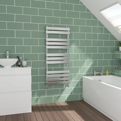 General description The 1200x500mm Chrome Flat Panel Heated Towel Rail is a stylish addition to any bathroom, serving as both a functional item and a statement piece. Its striking chrome finish adds a touch of luxury and elegance, making it perfect for those with a designer eye. Technical specifications Dimensions: 1200x500mm Pipe Center: 450mm Number of bars: 16 (3+5+8) Heat output: 1419 BTU Durable high-quality chrome finish Pressure tested to 10 bar Maximum working pressure: 7 bar Manufactured to BS EN 442 Installation It is recommended to have this item installed by a qualified plumber. Other information 10 year Fit and Forget guarantee (applies only to water leaks) Fixing pack included complete with plugs and vents Images for illustration purposes - colors may differ depending on your device screen and lighting