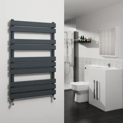 Warmehaus Flat Panel Heated Towel Rail Radiator Ladder Rad Anthracite 1000 x 600mm Grey Central Heating Warmer for Bathroom Kitchen