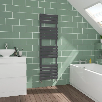 General description The Flat Panel Sand Grey Bathroom Heated Towel Radiator (1600x450mm) is a stylish and functional addition to any bathroom. Its striking sand grey finish adds a touch of luxury without being overpowering, making it perfect for those with a designer eye and a taste for elegance. This heated towel rail not only serves as a statement piece but also provides warmth and comfort for your towels. Technical specifications Dimensions: 1600mm x 450mm Pipe Center: 400mm Tube Diameter: 60mm Number of bars: 16 (3+4+4+5) Heat output: 2363 BTU Pressure tested to 10 bar, maximum working pressure: 7 bar Manufactured to BS EN 442 Installation We recommend hiring a qualified plumber for installation. Other information 10 year Fit and Forget guarantee (applies only to water leaks). Fixing pack included complete with plugs and vents. Images for illustration purposes - colors may differ depending on your device screen and lighting.