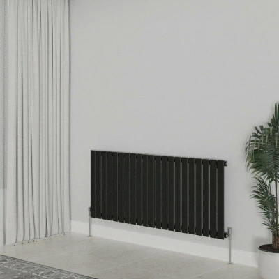 General description The WarmeHaus Horizontal Flat Panel Radiator in Black combines sleek design with functionality, making it an ideal heating solution for contemporary spaces. Its minimalistic aesthetic enhances the decor of any room, including bathrooms and kitchens, while providing efficient heating. Available in various sizes, this radiator fits both large and small areas, seamlessly blending with different color schemes. Technical specifications Dimensions: 600 x 1428 mm (H x W) Heat output: 3555 - 4467 BTUs Weight: 22 kg Durable high-quality black finish Number of bars: 21 Pressure tested to 10 bar, maximum working pressure: 7 bar Manufactured to BS EN 442 Installation We recommend hiring a qualified professional for installation. Fixing pack included, complete with plugs and vents. Usage Suitable for use on a central heating system. 10 years fit and forget guarantee.