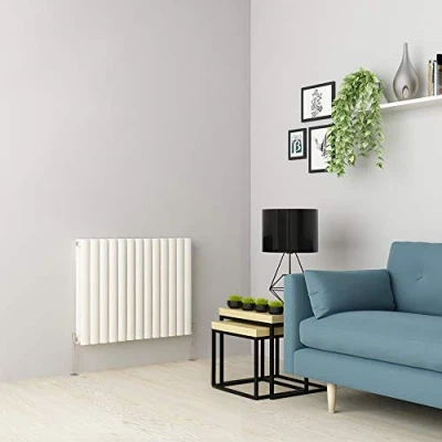 Modern oval panel style radiator - Double panel Dimensions: (H x W) 600 x 768mm - Pipe centre: 838mm (approx) - Depth when fitted: 90mm High heat output: 3573 BTU - number of bars: 26 - Suitable for use on all UK central heating system Durable high quality White finish - Corrosion resistance - Excellent heat output 10 Year Quality Guarantee - Manufactured to BS EN 442 standards - Fixing pack included complete with plugs and vents