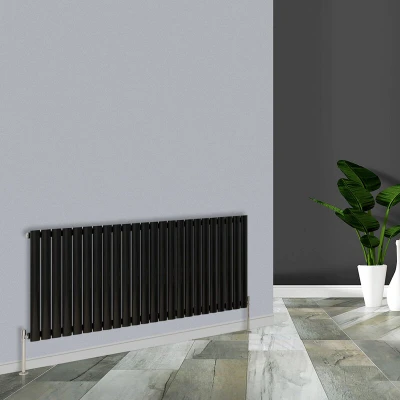General description This designer radiator serves as a striking statement piece for any room in your home. With its elegant design, it will undoubtedly become the focal point of your suite while delivering impressive heat output. Its compact footprint is perfect for saving valuable space, ensuring that you can maximize your living area without sacrificing style. Ideal for contemporary suites, the oval design is available in a variety of sizes and colors to accommodate any decor or personal preference. Whether you prefer a sleek matte finish or a glossy look, there's an option to suit your needs. Transform your space with this perfect blend of functionality and aesthetic appeal! Technical specifications Panel Configuration: Single Bar Colour: Black Material: Mild Steel Orientation: Horizontal Height: 600 mm Width: 1416 mm Number of Columns: 24 BTU Output: 3733-4702 BTU (in T50 - T60) Warranty: 10 years "fit and forget" guarantee Manufactured to BS EN 442 Pressure tested to 10 bar,