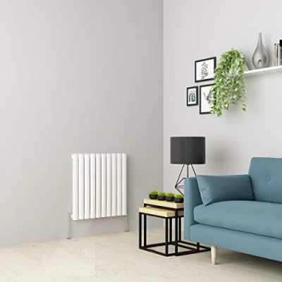 Warmehaus Horizontal Column Designer Radiator Oval Panel Single White 600 x 590mm Modern Central Heating Space Saving Radiators Perfect for Bathrooms, Kitchen, Hallway, Living Room