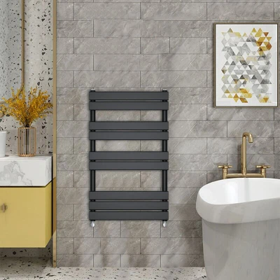 General description WarmeHaus presents the 1000 x 600mm Black Flat Panel Heated Towel Rail, designed to add a touch of elegance to your bathroom while providing efficient heating. This stylish towel rail features a minimalist design with flat panels and is perfect for keeping your towels warm and dry. Technical specifications Dimensions: 1000 x 600mm Number of bars: 9 (2+2+2+3) Pipe Centres: 550mm Heat output: 1989 BTU (calculated with T 50 degree) Pressure tested to: 10 bar Maximum working pressure: 7 bar Manufactured to: BS EN 442 Finish: Durable high-quality black Installation We suggest you ask a qualified plumber to install this item. Fixing pack included complete with plugs and vents. Excludes: Valves. Usage This heated towel rail is ideal for use in bathrooms, providing warmth and comfort while ensuring your towels are always ready for use. Other information