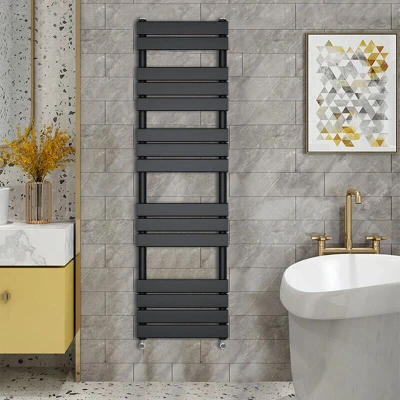 General description WarmeHaus presents the 1600 x 450mm Black Flat Panel Heated Towel Rail, designed to add a touch of elegance to your bathroom while providing efficient heating. With its stylish flat panels and durable black finish, this heated towel rail not only enhances your bathroom's aesthetics but also ensures your towels are warm and cozy. Technical specifications Dimensions: 1600 x 450mm Number of bars: 15 (2+3+3+3+4) Pipe Centres: 400mm Heat output: 2363 BTU (calculated with T 50 degree) Pressure tested to 10 bar, maximum working pressure: 7 bar Manufactured to BS EN 442 Installation We recommend hiring a qualified plumber for installation. Fixing pack included, complete with plugs and vents. Valves are not included. Usage This heated towel rail is perfect for keeping your towels warm and dry, enhancing comfort in your bathroom. Other information