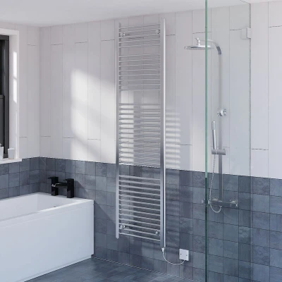 General description The Prefilled Electric Straight Heated Radiator in Chrome 1800x500mm is a stylish addition to any bathroom, serving as both a functional towel rail and a statement piece. Its striking chrome finish adds a touch of luxury and elegance, making it perfect for those with a designer eye. Technical specifications Dimensions: 1800mm height x 500mm width Element Power: 800W Number of bars: 39 (5+8+13+13) Pipe diameter: 19mm Pipe Centres: 450mm Pressure tested to 10 bar Maximum working pressure: 7 bar Manufactured to BS EN 442 Other information 10 year Fit and Forget guarantee (applies only to water leaks) on towel rail 2 year guarantee on heating element Fixing pack included complete with plugs and vents This item comes pre filled and ready to install