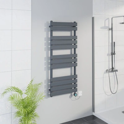 Warmehaus Smart WiFi Thermostatic Electric Bathroom Flat Panel Heated Towel Rail Warmer Radiator with Timer 1200x500mm Sand Grey
