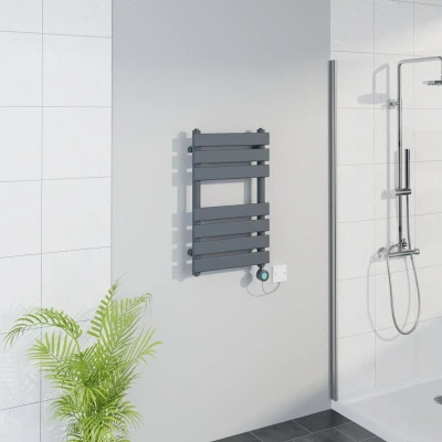 Warmehaus Smart WiFi Thermostatic Electric Bathroom Flat Panel Heated Towel Rail Warmer Radiator with Timer 650x400mm Sand Grey