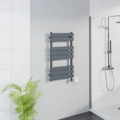 General description This WiFi Thermostatic Flat Towel Rail Timer in Sand Grey measures 800x450mm and features a powerful 400W WiFi Electric Heating Element. It comes pre-filled and ready to install, making it a convenient addition to your bathroom. Technical specifications Dimensions: 800x450mm Power: 400W Number of bars: 8 (2+3+3) Pressure tested to 10 bar, maximum working pressure: 7 bar Manufactured to BS EN 442 Installation Fixing pack included with plugs and vents Installation by a qualified electrician is recommended Usage WiFi Connection: Download and install the Smart Life app from the App Store or Google Play Store Temperature settings: Free Mode (30°C to 70°C), Constant Temperature Mode (fixed at 50°C), Timing Mode (fixed at 65°C, adjustable drying time from 30 minutes to 8 hours), Schedule Mode (timing function) Child Lock function to prevent accidental operation T Piece Connector included for dual fuel conversion Other information 10-year guarantee for heated towel rail