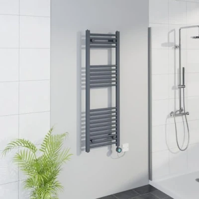 Warmehaus Smart WiFi Thermostatic Electric Bathroom Straight Heated Towel Rail Warmer Radiator with Timer 1200x400mm Anthracite