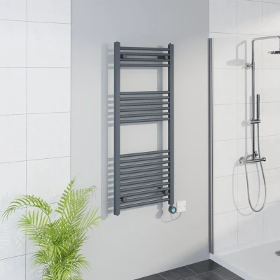 Warmehaus Smart WiFi Thermostatic Electric Bathroom Straight Heated Towel Rail Warmer Radiator with Timer 1200x500mm Anthracite