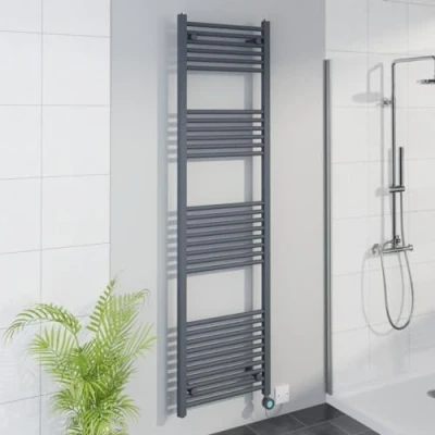 Amazon1800x500mm anthracite electric thermostatic heated towel warmer with 800w electric heating element, number of bars: 30 (6+6+8+10). All the radiators comes prefilled and ready to install. The thermostatic electric heating element can also adjust the heat and timing via your smartphone, download and install the APP Smart life from APP Store or Google Play Store. Thermostatic timer heating element have 4 Timer setting: Free mode, Constant Temperature mode, Timing mode and Schedule mode. Child Lock function: unable to operate any key (except on and off the machine).