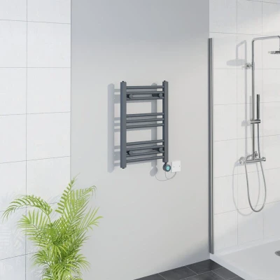 Warmehaus Smart WiFi Thermostatic Electric Bathroom Straight Heated Towel Rail Warmer Radiator with Timer 600x400mm Anthracite