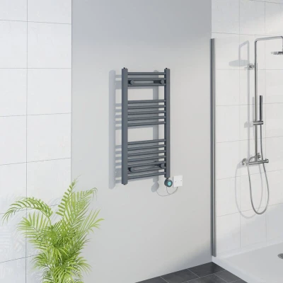 Warmehaus Smart WiFi Thermostatic Electric Bathroom Straight Heated Towel Rail Warmer Radiator with Timer 800x400mm Anthracite