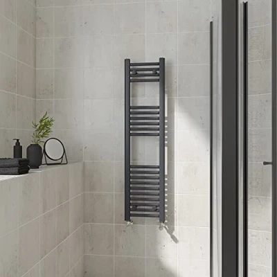 AmazonOur 1200x300mm straight heated towel rail grey is the perfect solution for your busy family bathroom. Features: 20 Straight bars - 75-95mm Wall to Centre Tapping - 1062 BTU heat output - 22mm cross tube diameter. Can be use on all UK heating systems. Comes with adjustable wall brackets and fittings. 10 years 'Fit and Forget' guarantee.