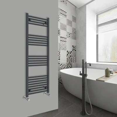 Warmehaus Straight Heated Towel Rail Anthracite Bathroom Ladder Style Radiator Grey Central Heating 1400x500mm