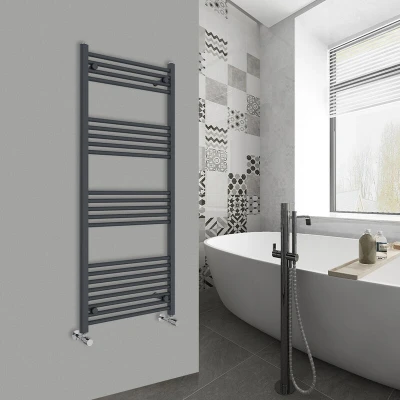 Warmehaus Straight Heated Towel Rail Anthracite Bathroom Ladder Style Radiator Grey Central Heating 1400x600mm