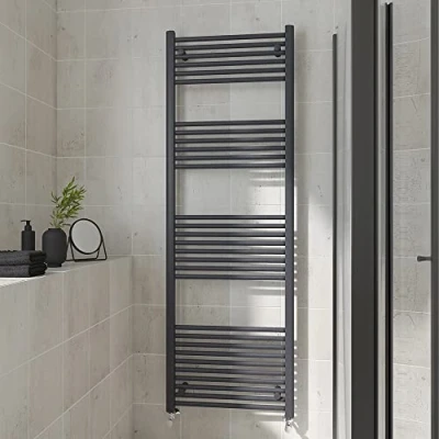 AmazonOur 1800x600mm straight heated towel rail grey is the perfect solution for your busy family bathroom. Features: 30 Straight bars - 75-95mm Wall to Centre Tapping - 2682 BTU heat output - 22mm cross tube diameter. Can be use on all UK heating systems. Comes with adjustable wall brackets and fittings. 10 years 'Fit and Forget' guarantee.