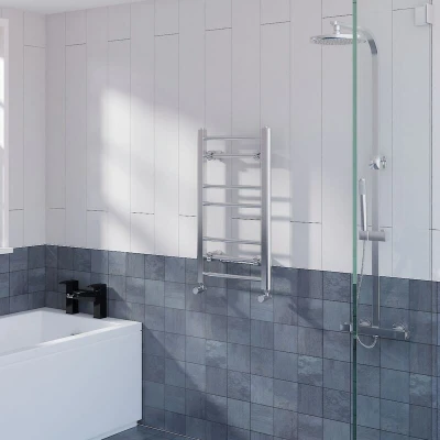 General description The 700x400mm Chrome Straight Heated Towel Rail is a contemporary masterpiece, perfectly suited for modern bathrooms. This functional towel rail is ideal for busy family bathrooms and is available in a variety of sizes and colors to complement different styles. Technical specifications Dimensions: 700x400mm Pipe Center: 350mm Tube Diameter: 19mm Number of bars: 7 (2+2+3) Heat output: 810 BTU Pressure tested to 10 bar, maximum working pressure 7 bar Manufactured to BS EN 442 Durable high-quality chrome finish Installation It is recommended to have this item installed by a qualified plumber. Other information 10 year Fit and Forget guarantee (applies only to water leaks) Fixing pack included complete with plugs and vents Images for illustration purposes - colors may differ depending on your device screen and lighting