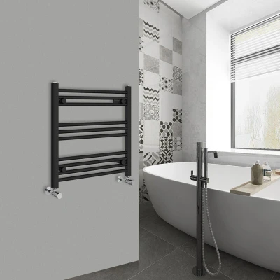 Warmehaus Straight Heated Towel Rail Black Bathroom Ladder Style Radiator Central Heating 600x600mm