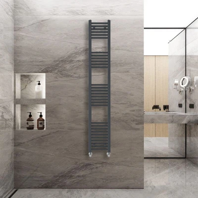 General description The 1800x300mm heated towel radiator in anthracite is a contemporary addition to any modern bathroom. With its sleek design and functional features, it is perfect for busy family bathrooms while complementing various styles. Technical specifications Dimensions: 1800x300mm Number of bars: 30 (6+6+8+10) Heat output: 1590 BTU Durable high-quality grey finish Pressure tested to 10 bar Maximum working pressure: 7 bar Manufactured to BS EN 442 Compatibility and accessories Fixing pack included (complete with plugs and vents) Installation It is recommended to have this towel radiator installed by a qualified plumber. Other information