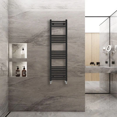 General description The 1400x400mm Black Straight Heated Towel Rail is a contemporary addition to any bathroom, combining style and functionality. It is designed to suit both modern and traditional bathroom suites, making it a versatile choice for busy family bathrooms. Technical specifications Dimensions: 1400x400mm Number of bars: 22 (4+5+5+8) Heat output: 1468 BTU Pressure tested to 10 bar Maximum working pressure: 7 bar Manufactured to BS EN 442 Durable high-quality black finish Compatibility and accessories Fixing pack included (complete with plugs and vents) Installation It is recommended to have this towel rail installed by a qualified plumber to ensure proper setup and functionality. Usage This heated towel rail is perfect for drying towels and adding warmth to your bathroom, enhancing comfort and convenience. Other information