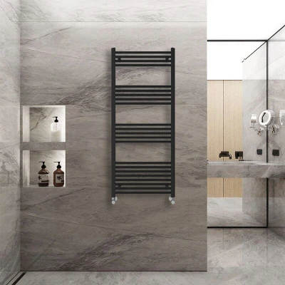 General description The 1400x600mm Black Straight Heated Towel Rail is a contemporary addition to any bathroom, combining style and functionality. It is perfect for busy family bathrooms and is available in a variety of sizes and colors to suit different decor styles. Technical specifications Dimensions: 1400x600mm Number of bars: 22 (4+5+5+8) Heat output: 2003 BTU Durable high-quality black finish Pressure tested to 10 bar Maximum working pressure: 7 bar Manufactured to BS EN 442 Installation It is recommended to have this item installed by a qualified plumber. Other information